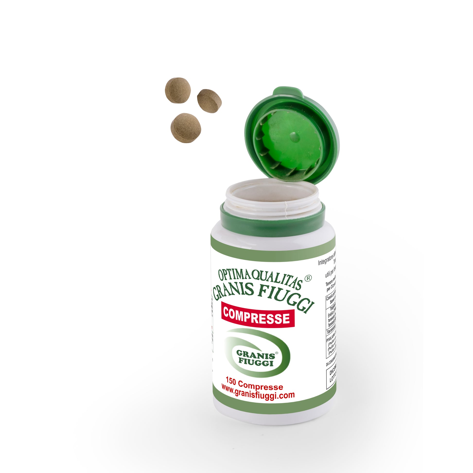 Stessi ingredienti della formula granis fiuggi 35g ma sotto forma di compresse più deglutibili e masticabili.